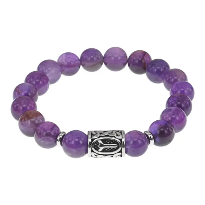 Браслет с руной Мир нерж.сталь, Аметист 10мм BSRNX10-01-02