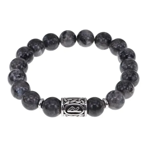 Славянский стрейч-браслет ручной работы из натурального камня лабрадор и бусины с руной из нержавеющей стали.