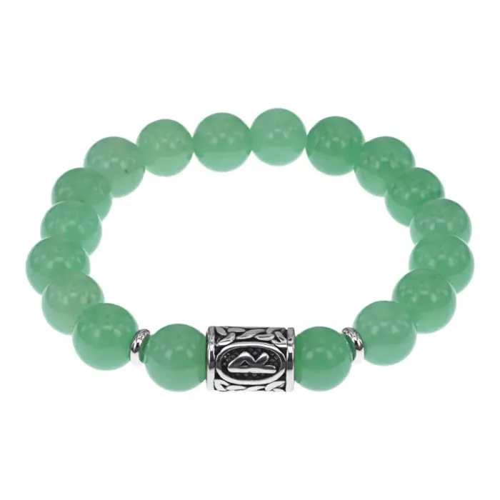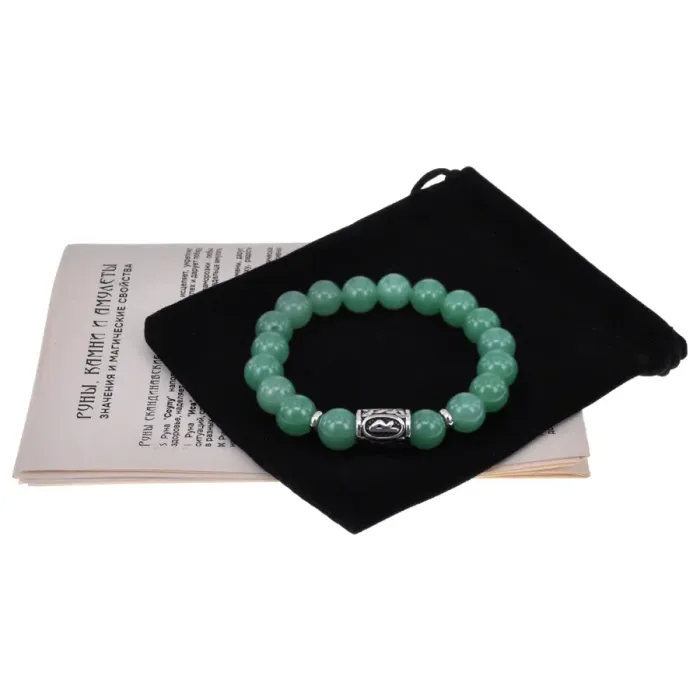 Славянский стрейч-браслет ручной работы из натурального камня и нержавеющей стали с рунической бусиной.