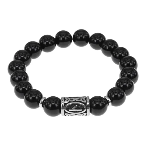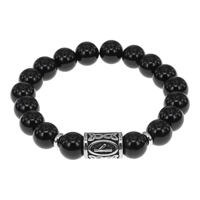 Браслет с руной Нужда нерж.сталь, Черный агат 10мм BSRNX10-05-01