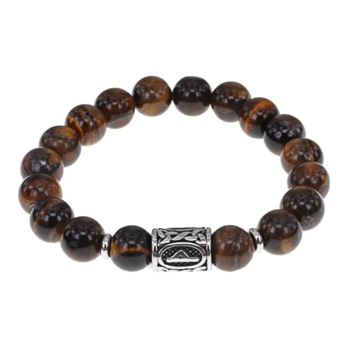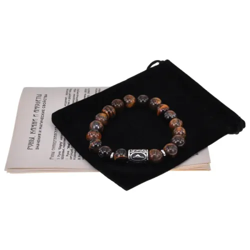 Браслет с руной Даждьбог, нержавеющая сталь, Тигровый глаз 10мм BSRNX10-14-01
