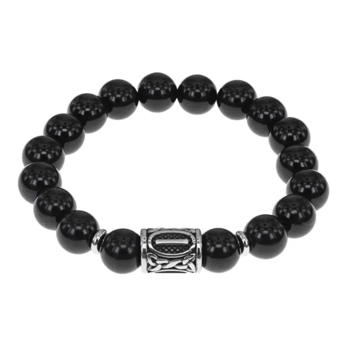 Браслет с руной Исток, нержавеющая сталь, черный агат 10мм BSRNX10-16-02
