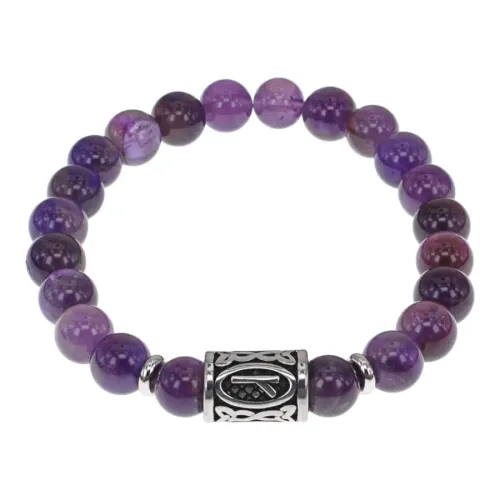 Браслет с руной Алатырь нерж.сталь, Аметист 8мм BSRNX8-03-01