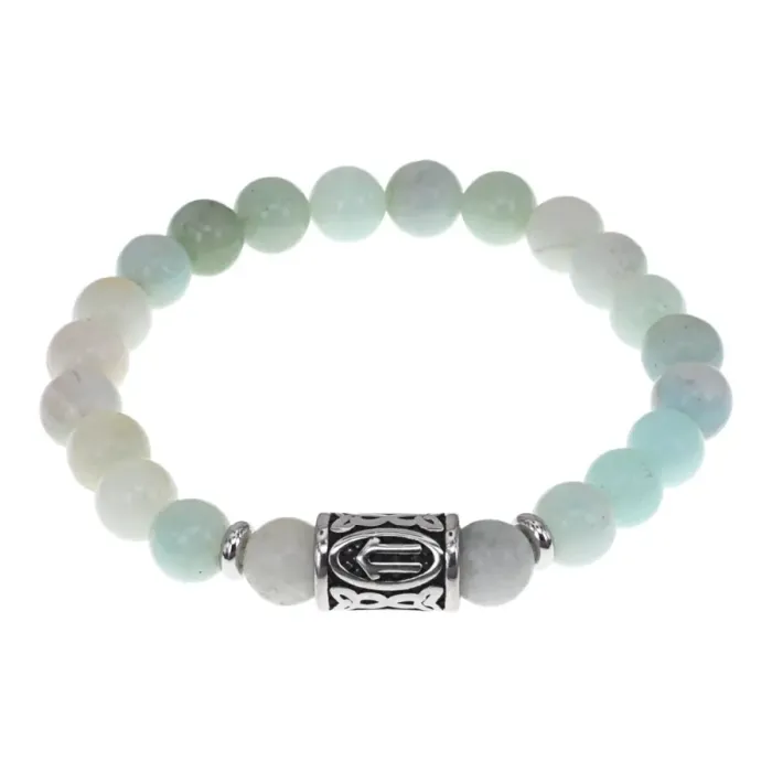 Браслет с руной Ветер нерж.сталь, Аметист 8мм BSRNX8-09-02