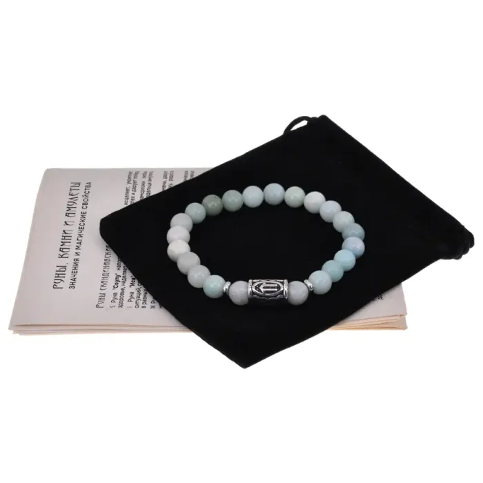 Материал и изготовление: Натуральный аметист (бусины 8 мм), нержавеющая сталь (руническая бусина). Ручная работа.