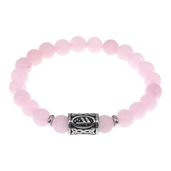 Браслет с руной Берегиня, нерж. сталь, Розовый кварц 8мм BSRNX8-10-01