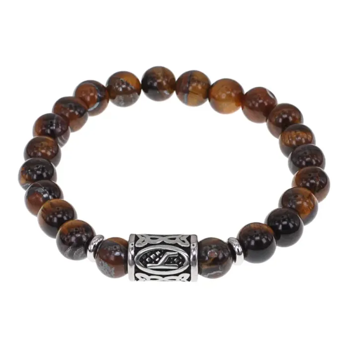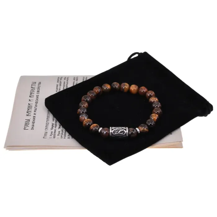 Браслет с руной Уд нерж.сталь, Тигровый глаз 8мм BSRNX8-11-01