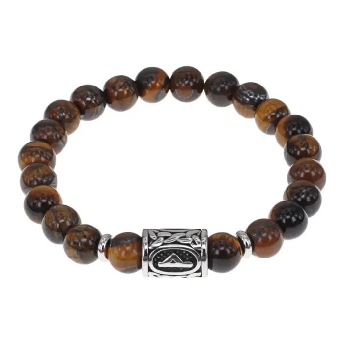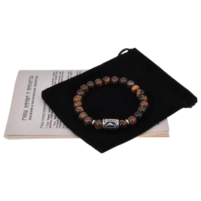 Браслет с руной Даждьбог, нержавеющая сталь, Тигровый глаз 8 мм BSRNX8-14-01