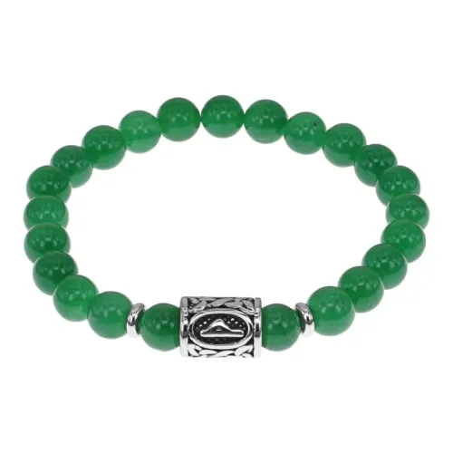 Браслет с руной Даждьбог, нерж. сталь, Нефрит 8мм BSRNX8-14-02