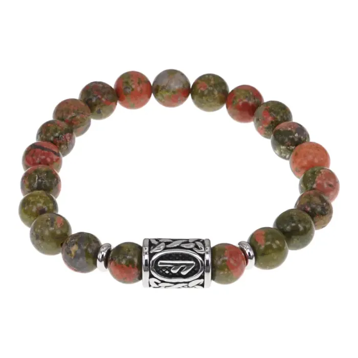 Браслет с руной Есть нерж.сталь, Унакит 8мм BSRNX8-15-01
