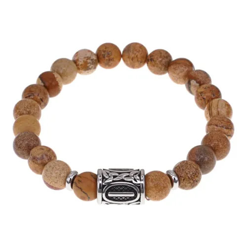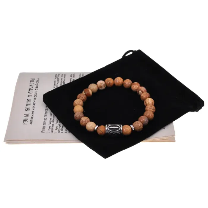 Браслет с руной Исток, нержавеющая сталь, песочная яшма 8 мм BSRNX8-16-01