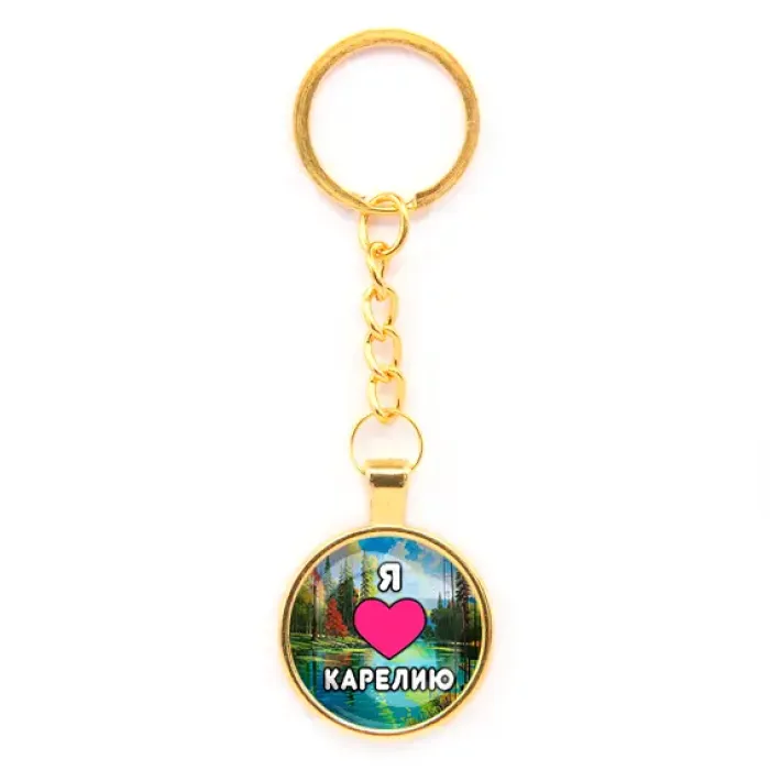 Круглый брелок, цвет золото, с цепочкой, Я люблю Карелию C0601020
