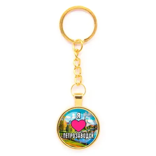 Круглый брелок, цвет золото, с цепочкой, Я люблю Петрозаводск C0602020