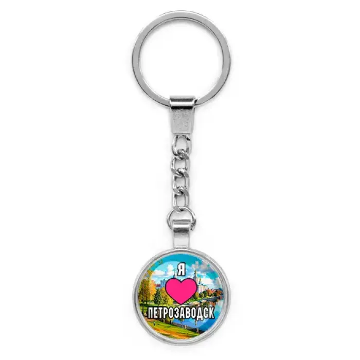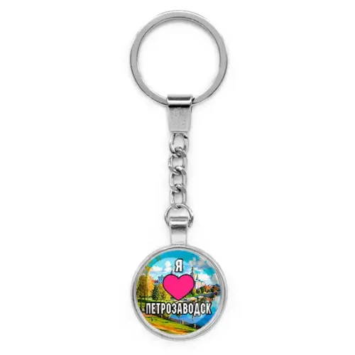 Круглый брелок-сувенир из бижутерного сплава с изображением «Я люблю Петрозаводск».