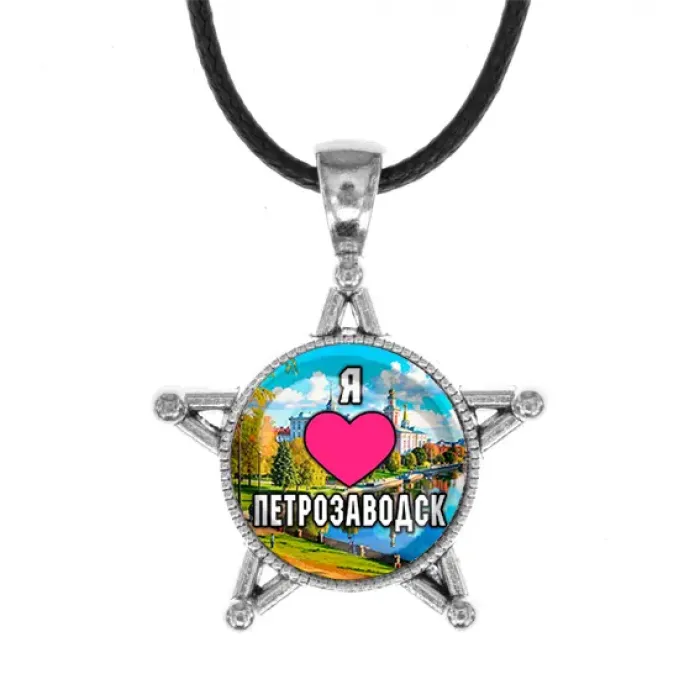 Сувенирный кулон в форме звезды из бижутерного сплава с надписью «Я люблю Петрозаводск».
