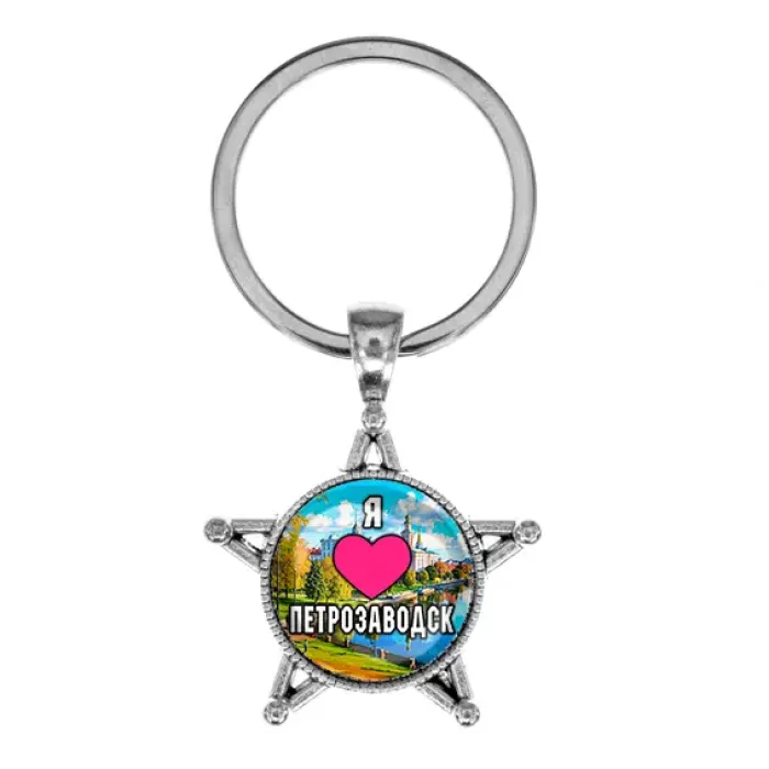 Брелок-сувенир в форме звезды из металлического сплава с изображением, посвящённым Петрозаводску.
