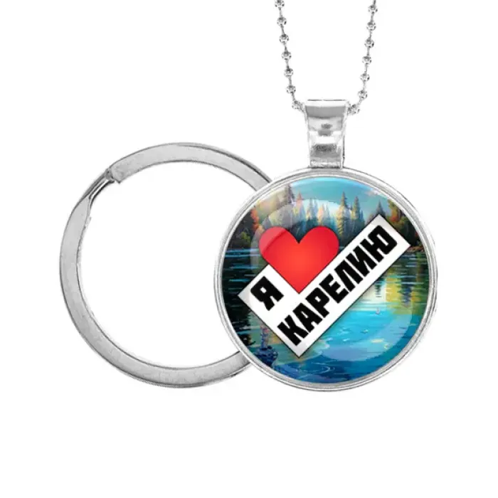Кулон-брелок, цвет серебро, с цепочкой и кольцом, Я люблю Карелию C0603054