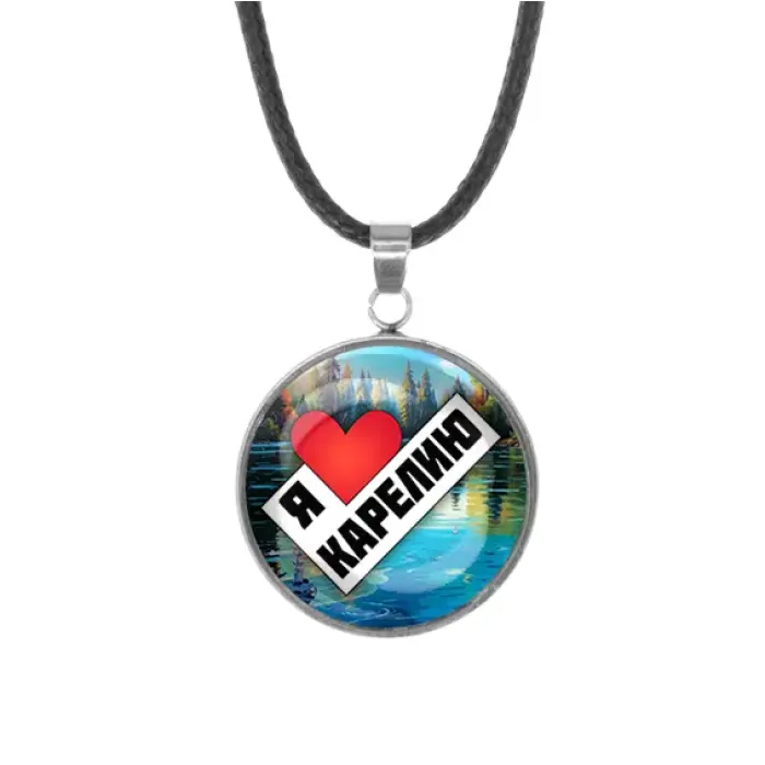 Кулон, нержавеющая сталь, со шнурком, Я люблю Карелию C0603062