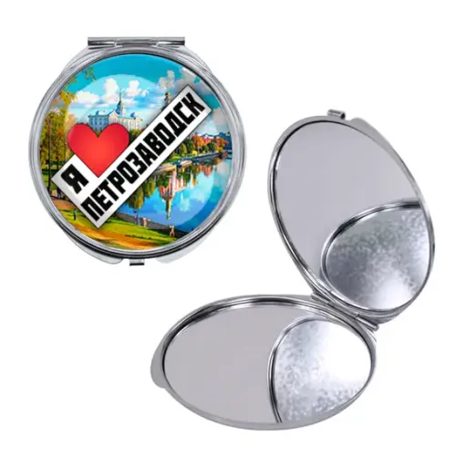 Круглое складное зеркало, цвет серебро, Я люблю Петрозаводск C0604016