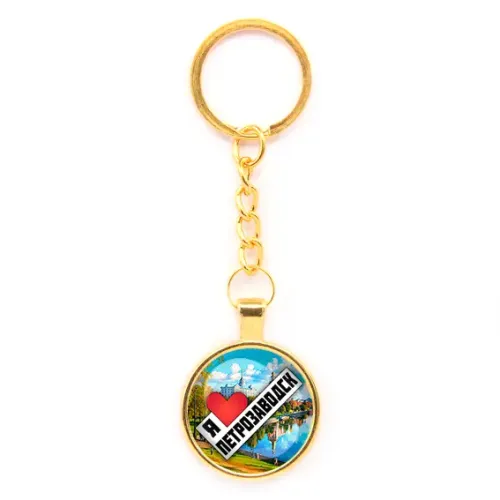 Круглый брелок, цвет золото, с цепочкой, Я люблю Петрозаводск C0604020