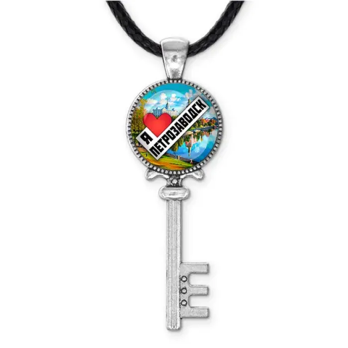 Сувенирный кулон в виде ключа из бижутерного сплава с надписью «Я люблю Петрозаводск».