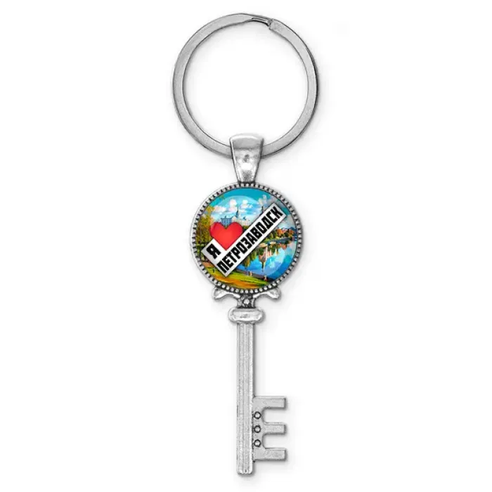 Сувенирный брелок в форме ключа из бижутерного сплава с надписью «Я люблю Петрозаводск».