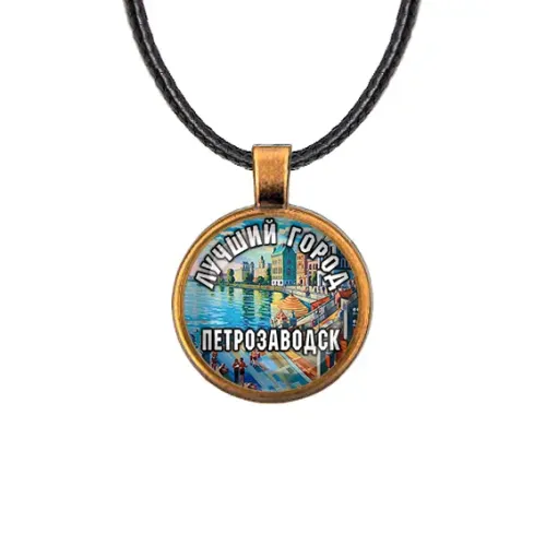 Кулон-сувенир из бижутерного сплава с изображением Петрозаводска.