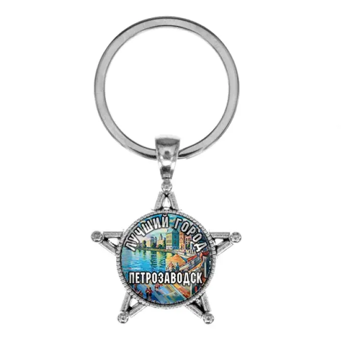 Брелок в виде звезды из бижутерного сплава под серебро с изображением Петрозаводска.