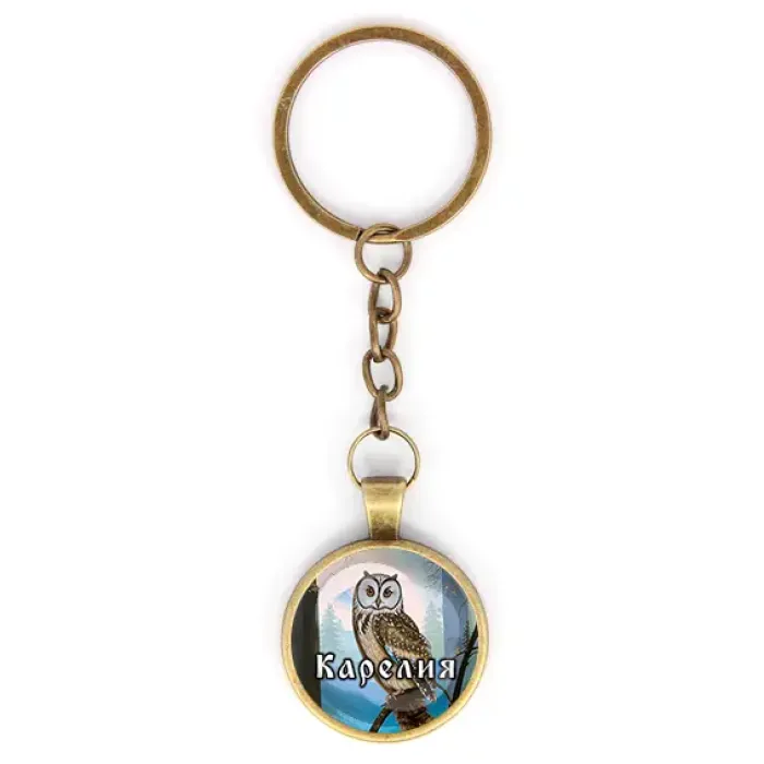 Брелок для ключей круглой формы в цвете бронза с изображением Карелии.