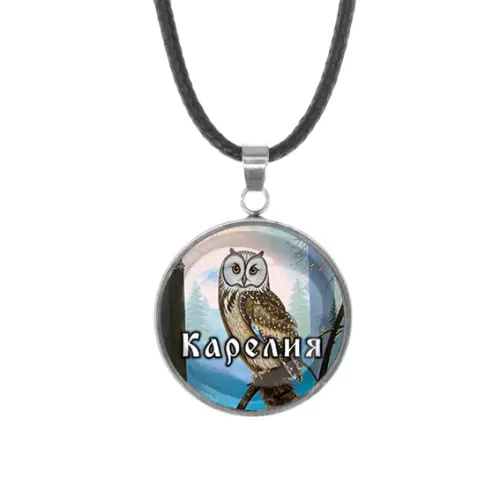 Кулон-амулет из нержавеющей стали с изображением под стеклянной линзой.