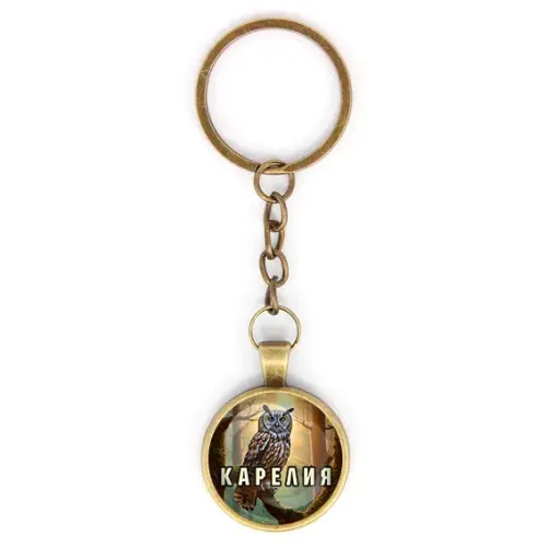 Брелок круглой формы в цвете бронза с цепочкой, сувенирный аксессуар с изображением, связанным с Карелией.