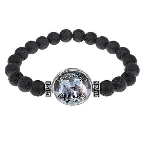 Стрейч-браслет из натуральной лавы с изображением под выпуклой стеклянной линзой.