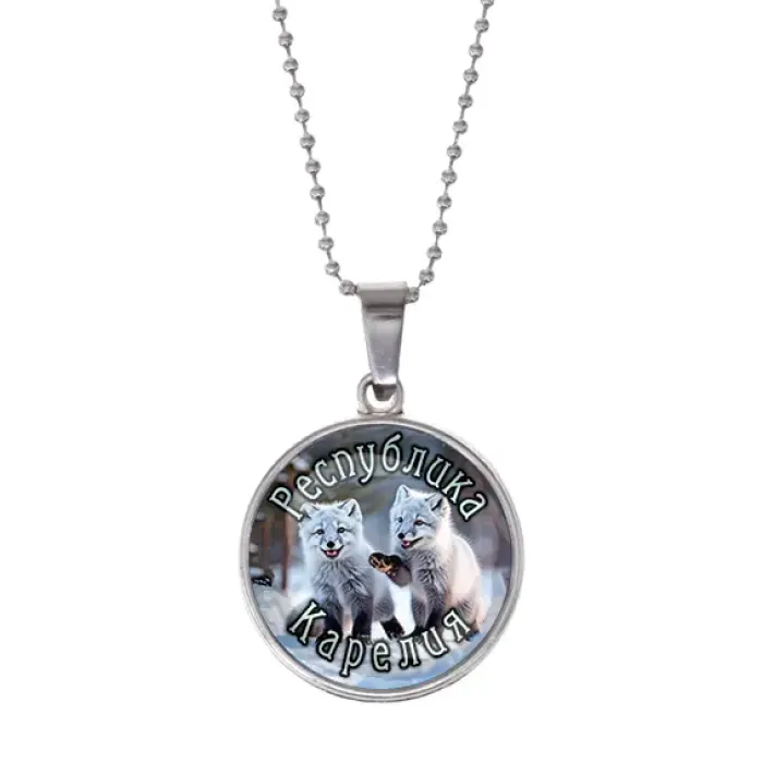 Сувенирный кулон с цепочкой, посвящённый Республике Карелия. Цвет серебро.
