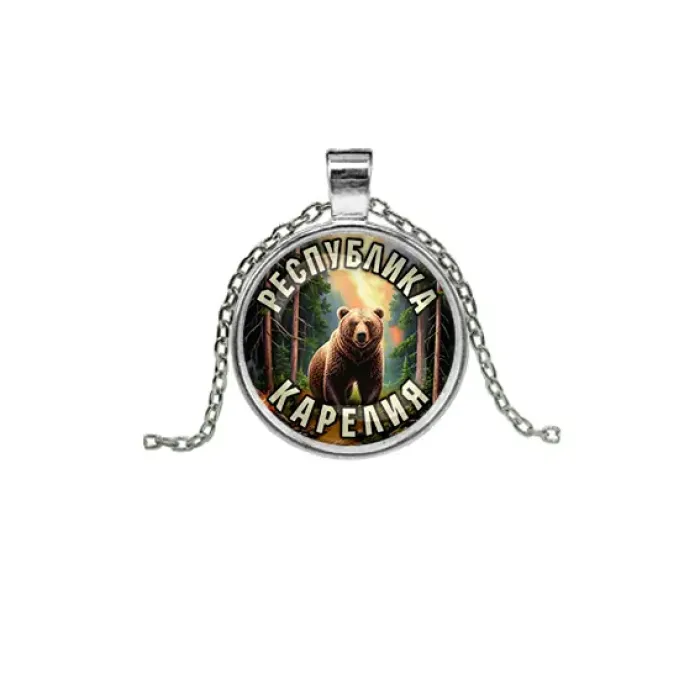 Сувенирный кулон с цепочкой, посвящённый Республике Карелия, выполнен в серебристом цвете.