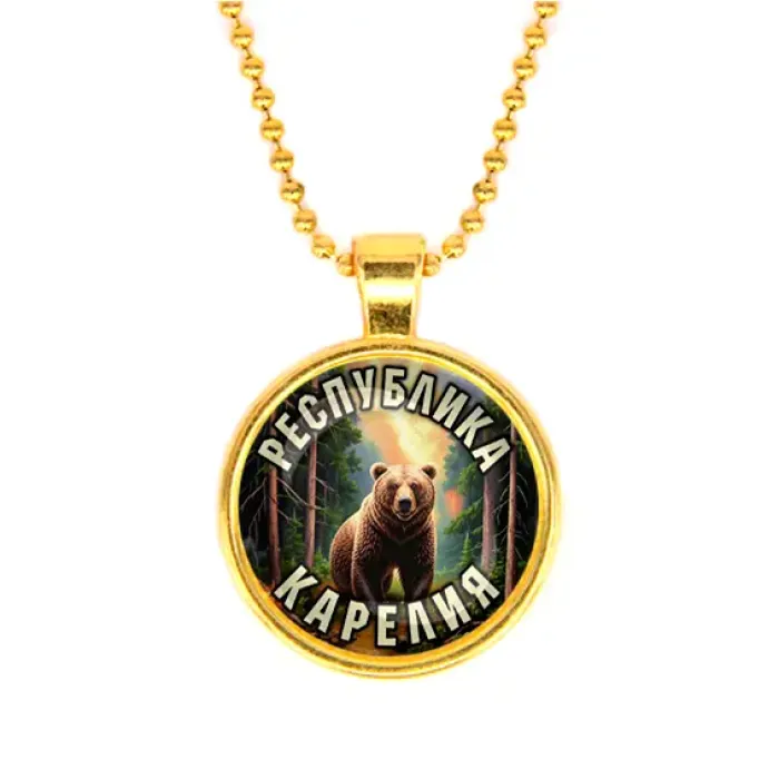 Кулон с цепочкой, сувенирный аксессуар с изображением, связанным с Республикой Карелия. Цвет золотой.