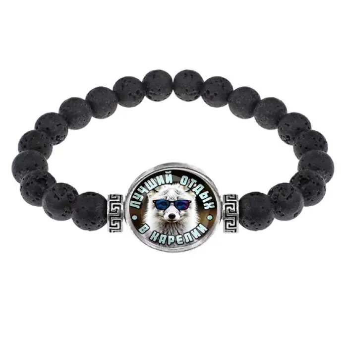 Стрейч-браслет из натуральной лавы с бусиной диаметром 8 мм и изображением под выпуклой стеклянной линзой.