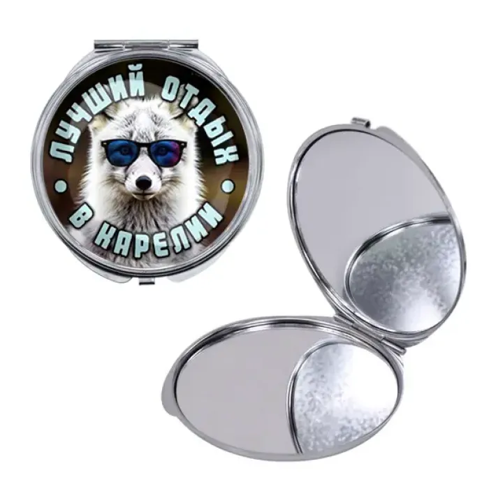 Круглое складное зеркало, цвет серебро, Лучший отдых в Карелии C0610016