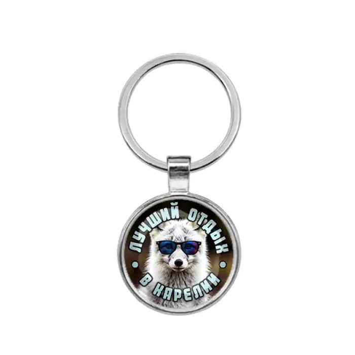 Круглый брелок для ключей из бижутерного сплава с изображением на тему Карелии.