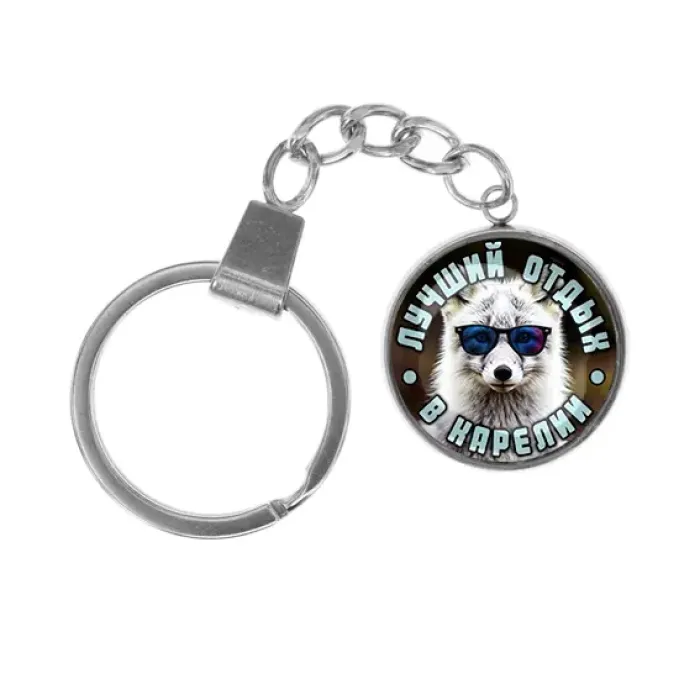 Брелок из нержавеющей стали с кольцом для ключей и изображением под стеклянной линзой.
