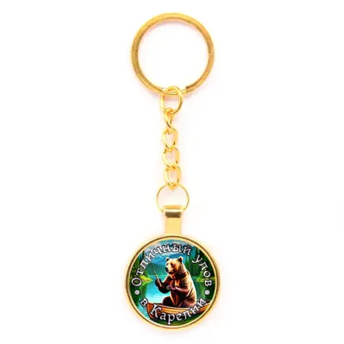 Круглый брелок, цвет золото, с цепочкой, Отличный улов в Карелии C0611020