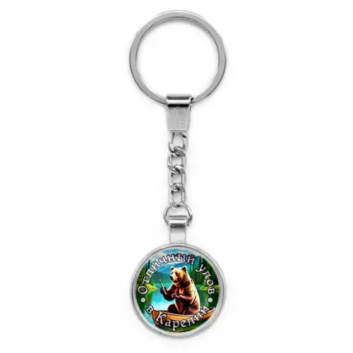Круглый брелок, цвет серебро, с цепочкой, Отличный улов в Карелии C0611022