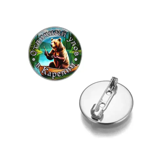 Круглый значок, цвет серебро, Отличный улов в Карелии C0611023