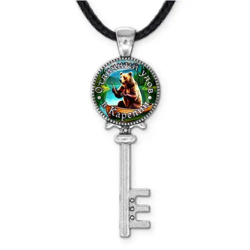Кулон ключ, цвет серебро, со шнурком, Отличный улов в Карелии C0611043