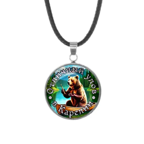 Кулон, нержавеющая сталь, со шнурком, Отличный улов в Карелии C0611062