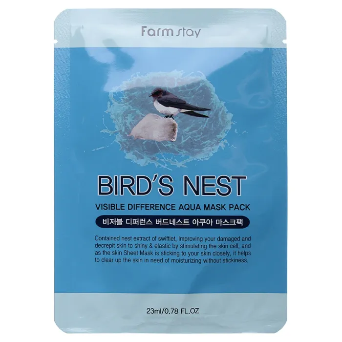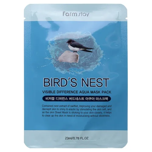 Маска тканевая с экстрактом ласточкиного гнезда FarmStay VISIBLE DIFFERENCE BIRDS NEST AQUA MASK PACK — это эффективное средство для восстановления и ухода за повреждённой и возрастной кожей. Содержащийся в маске экстракт ласточкиного гнезда способствует регенерации клеток, делает кожу более упругой и эластичной, а также обеспечивает её глубокое увлажнение. Маска помогает повысить кожный иммунитет и защищает от негативного воздействия УФ-излучения.