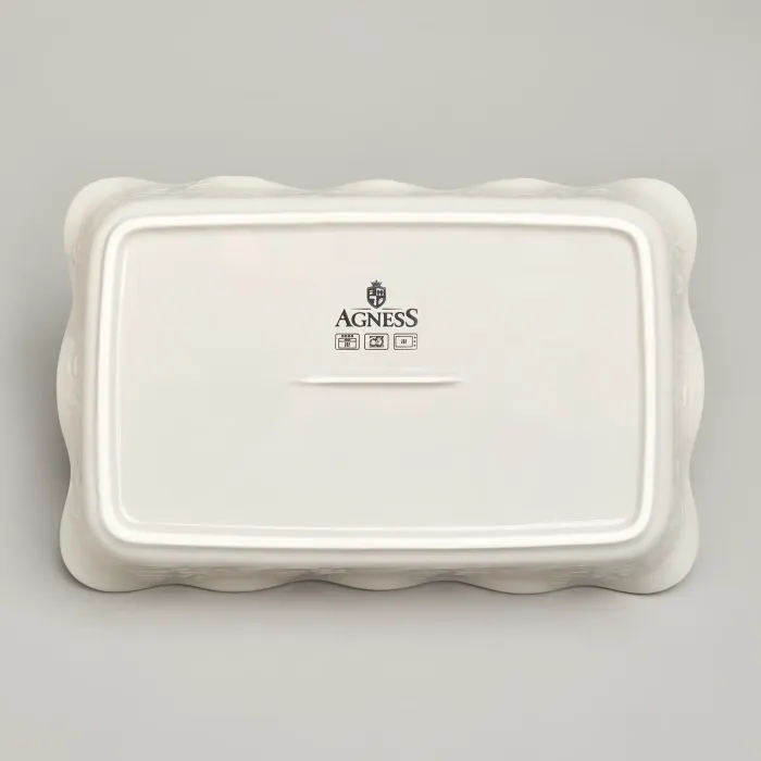 Керамический корпус формы устойчив к царапинам и рассчитан на температурный режим до 200 °C. Форма имеет прямоугольную конструкцию размерами 28,5 × 18 × 7 см. Гладкая поверхность облегчает очистку и обеспечивает гигиеничность использования.