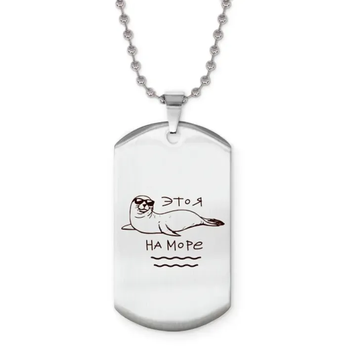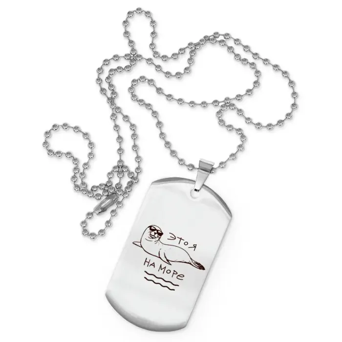 Сувенирный жетон на цепочке с гравировкой на морскую тематику. Изготовлен из полированной нержавеющей стали.