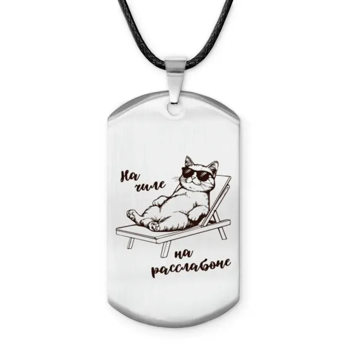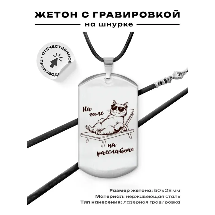 Амулет-жетон из полированной нержавеющей стали с гравировкой изображения на одной стороне.