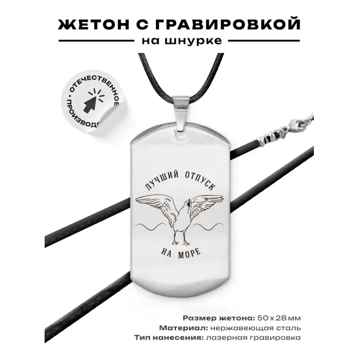 Амулет-жетон сувенирный из полированной нержавеющей стали с односторонней гравировкой.