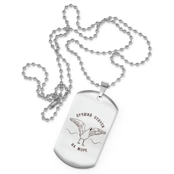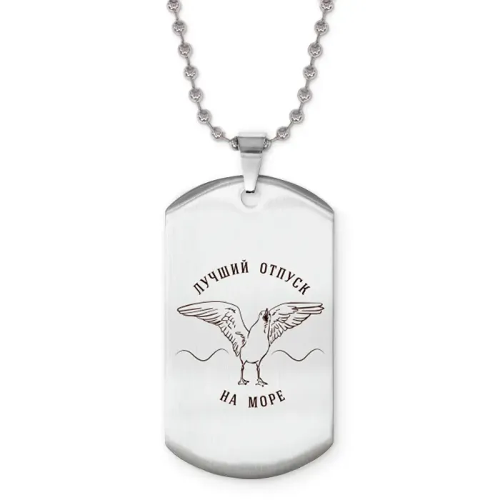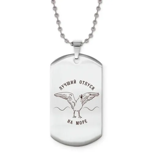 Жетон на цепочке «Лучший отпуск на море» — сувенирный аксессуар из полированной нержавеющей стали с односторонней гравировкой.